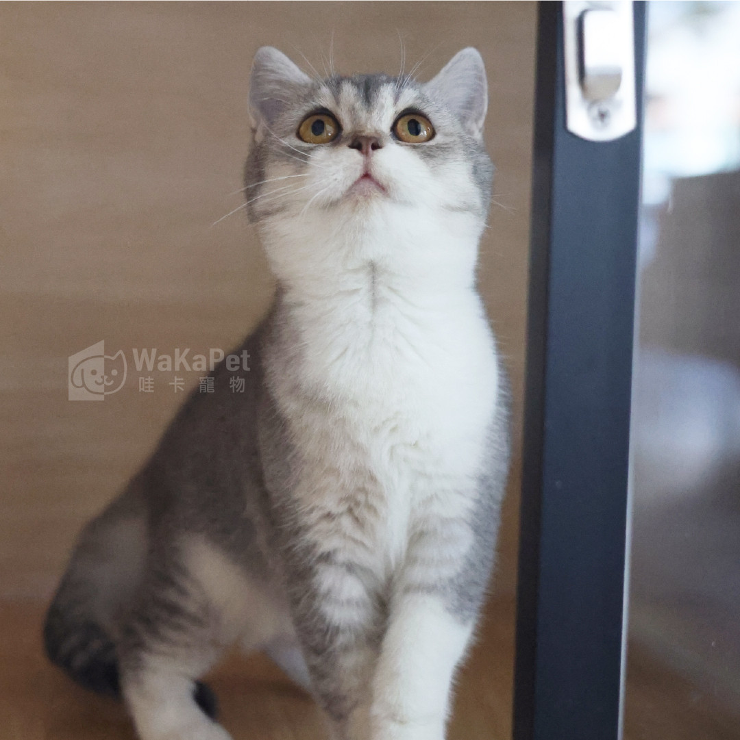這隻夢幻的「藍金加白英短妹妹」,來自我們 台中合法貓舍 精心培育,由 WakaPet 哇卡寵物 門市獨家嚴選釋出。讓您不用擔心來源,在市區門市就能安心尋找命定的貓咪。