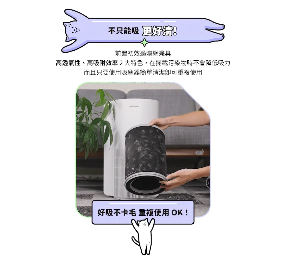 ⟢ 前置濾網可清潔後再使用,CP 值超高