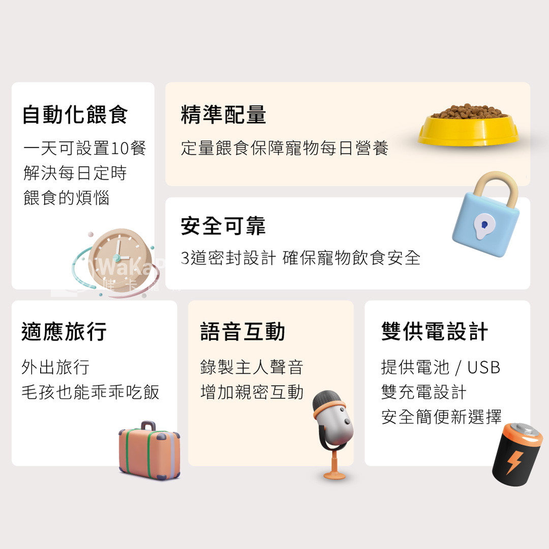 定時餵食:App設定,準時供餐。